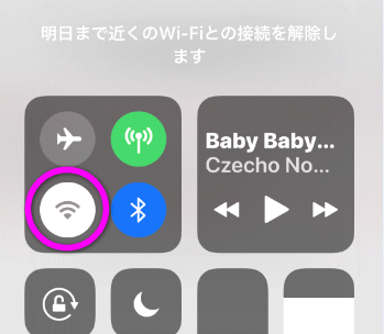コントロールパネルを出し、「Wi-Fi」が青の場合はタップして・・・