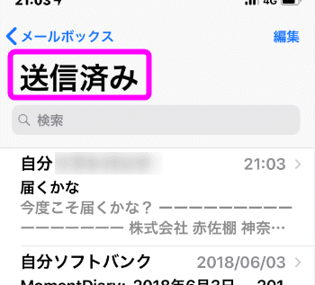 「送信済みボックス」を開くと、ちゃんとメールが振り分けられていました。