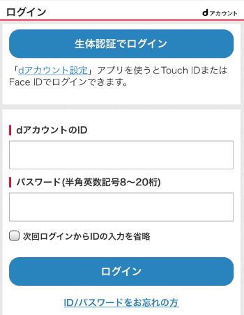 どこでもいいのですが、ドコモのサイトのログイン画面を表示させます。