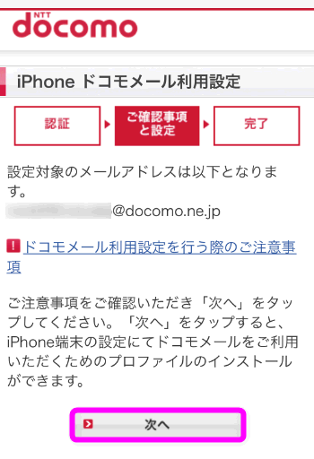 このまま2段階認証の設定を続けます。「次へ」をタップします。