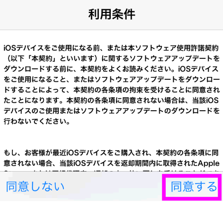 「利用条件」が表示されるので、右下の「同意する」をタップします。