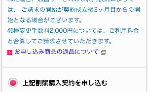 確認画面が表示されるので、「上記割賦購入契約を申し込む」にチェックを入れ・・・