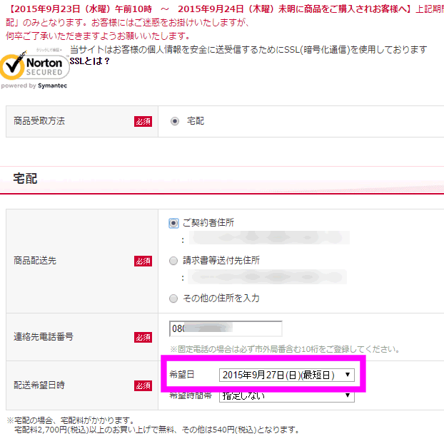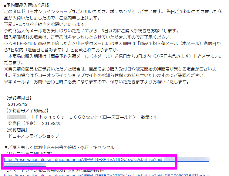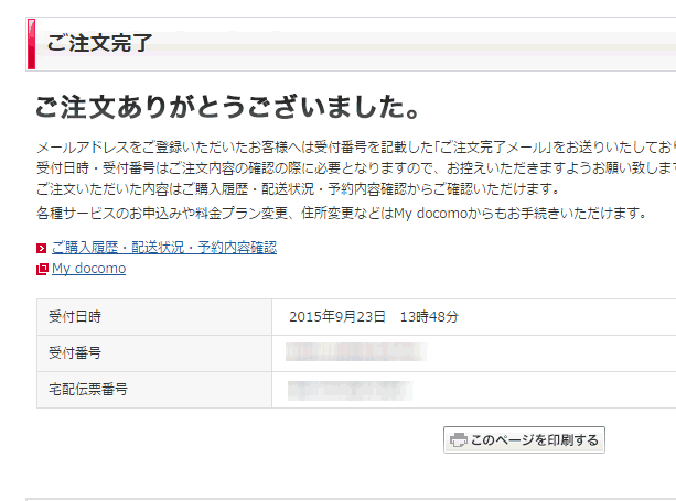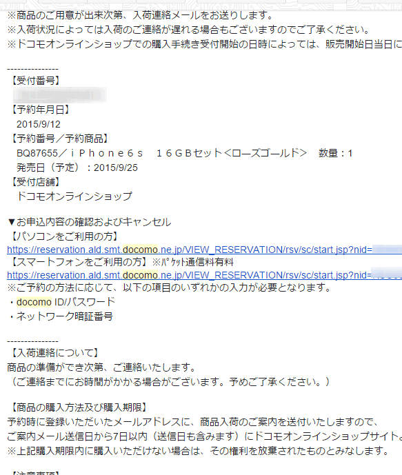 9月23日、docomoから商品の準備ができたというメールが届きました。