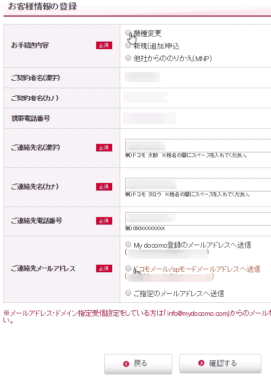 なお、契約者名や携帯電話番号などはすでに入力された状態でした。