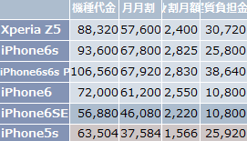 参考価格として、アンドロイドの「Xperia Z5」と、Y!モバイルの「iPhone5s」も載せてみました。