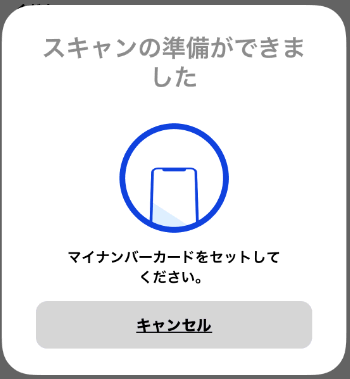 アプリを立ち上げた時点でもう、マイナンバーカードを読み込む手続き。