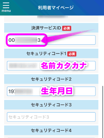 「セキュリティコード2」は、生年月日を入力します。