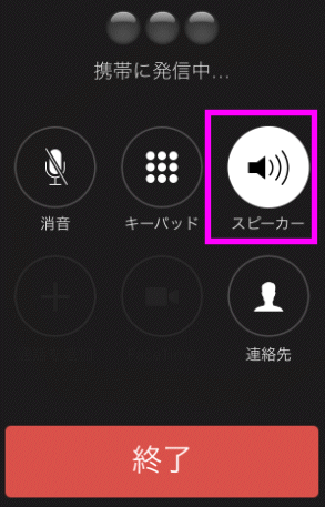 通話中の画面の「スピーカー」という部分をタップすると、スピーカーモードになります。