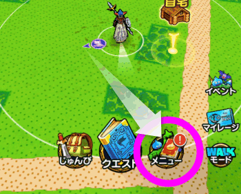 まずはドラゴンクエストウォークをプレイしていた古い機種側の操作です。