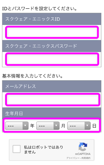 SQUARE ENIX ACCOUNTに登録