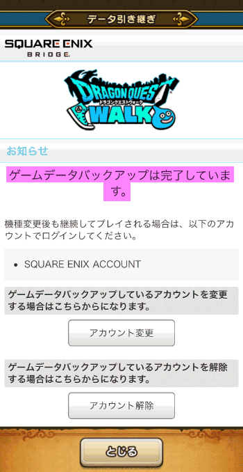 これで新しいスマホでドラゴンクエストウォークのデータを引き継ぐことができるようになりました。