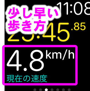 Apple Watchのアクティビティというアプリを使うと、歩行速度や自転車の速度をリアルタイムで表示させることが出来ます。