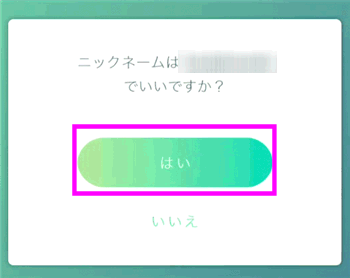 誰も取得していないニックネームだと、このような確認画面になるので、「はい」をタップします。