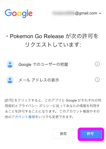 以下のことを許可するか、という確認が表示されるので、「許可」をタップします。