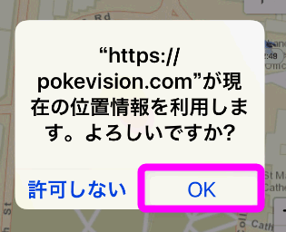 このときiPhoneであれば、このように「位置情報を利用します。よろしいですか?」という警告が表示されるので、「OK」をタップします。