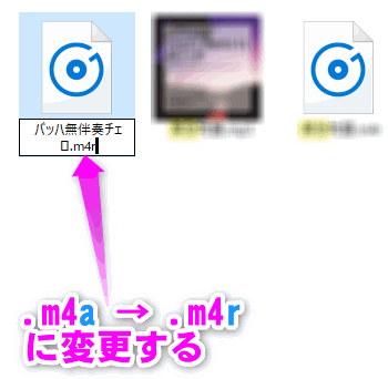 そのファイルを右クリックでwindowsエクスプローラーで開き拡張子をm4aからm4rに変更して