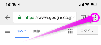 Chromeアプリの右上のまるで囲った部分をタップします。
