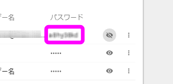 ただし、このままだとパスワードは表示されません。パスワードを表示させるにはその隣の「目」のようなアイコンをクリックします。