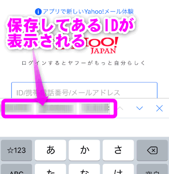 IDやパスワードを入力するページを表示させると、このようにキーボードの上に候補が表示されます。