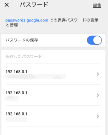 一度保存したIDやパスワードは、自由に確認することができます。確認方法は以下。