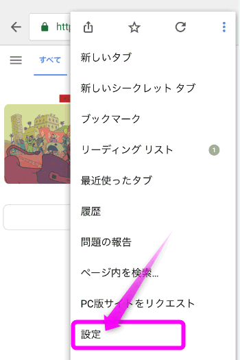 続いて②の「設定」をクリックします。