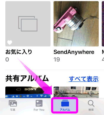 「写真」を開き、右下の「アルバム」をタップ。