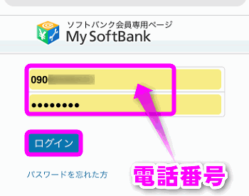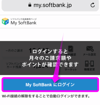 ログインしていなければ、「My SoftBankにログイン」をタップして・・・
