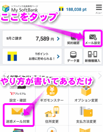 このページで紹介する方法はソフトバンクのiPhoneの迷惑メール対策です。