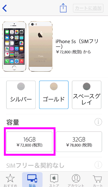 SIMフリーの1つ前の世代のiPhone5sは、16GBだと72,800円もします。