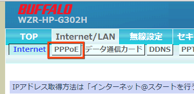 ルーターの設定画面で、上の「Internet/LAN」という部分をクリックします。