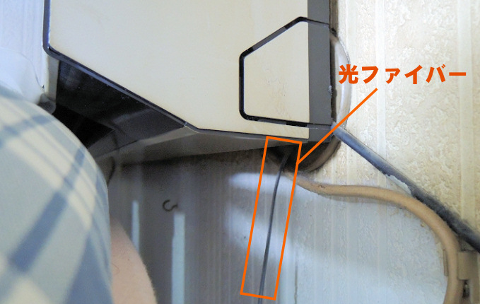 Bフレッツを使用する場合、光ファイバーのコードがこのようにエアコンのダクトからひきこまれているかと懐います(新築の場合は、壁に埋め込まれている)。