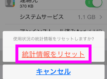 確認画面になるので、「統計情報をリセット」という部分をタップします。