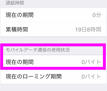 iPhoneなどスマートフォンは、使用していなくてもインターネットに接続するので、月々のデータ量が不安な人は、ここを月初めにリセットして常にチェックするといいと思います。