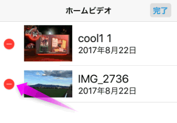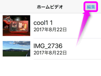 左上の「ホームビデオ」をタップすると、先程の動画の一覧画面に戻ります。
