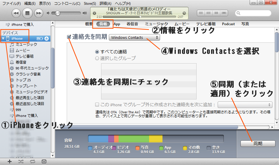 これで、iPhoneとパソコンを繋ぐたびに、アドレス帳のデータが同期されます。