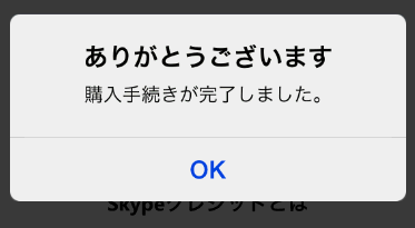 銀行振込の場合は、タップすると「ありがとうございました」が表示されてしまいました。