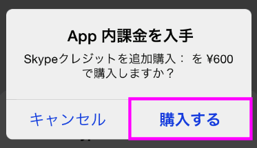 前払いは、Skypeクレジットと呼ばれるクレジットカードやコンビニで販売されているプリペイドカード、それからiTunesストアでの支払い(600円)など様々な支払い方法が選択できる機能で料金をチャージします。