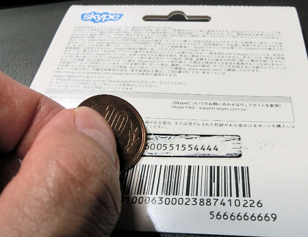 カードの裏側に銀色に覆われた部分があるので、ここをコインなどでこすります。