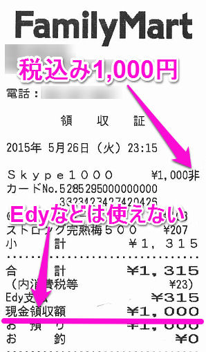 ファミマはコンビニの中で最も早くからSkypeクレジットに対応していました。そのため、ファミマのみプリペイドカードが販売されています。