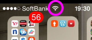 このように画面の上、時計の隣あたりに丸で囲ったような扇形のアイコンが表示されれば、ソフトバンクWi-Fiスポットに接続された状態になります。