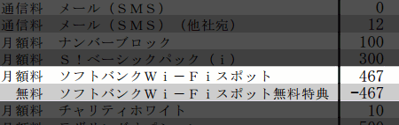 実際には月額467円なのですが、パケホに加入している場合は、467円が差し引かれるので実質無料になります。