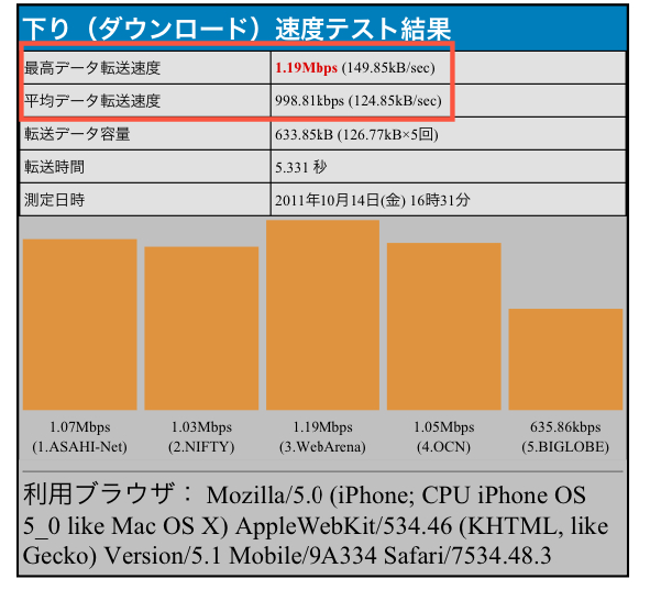 - 『iPhone 4S』の通信速度、auよりソフトバンクの方が速いのは確定的。実測値でauは1.45Mbpsに対しSBは2.02Mbps