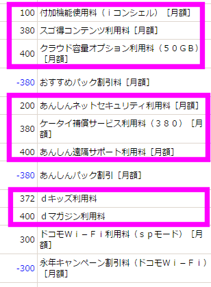 よくよく調べてみると、ドコモショップで強制的に付けさせられた、不要なオプションとパケットプランも高いプランを契約させられていたのです。