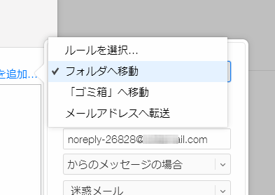これで「noreply-26828@wldemail.com」から届くメールは自動で「迷惑メール」に移動するようになりました。