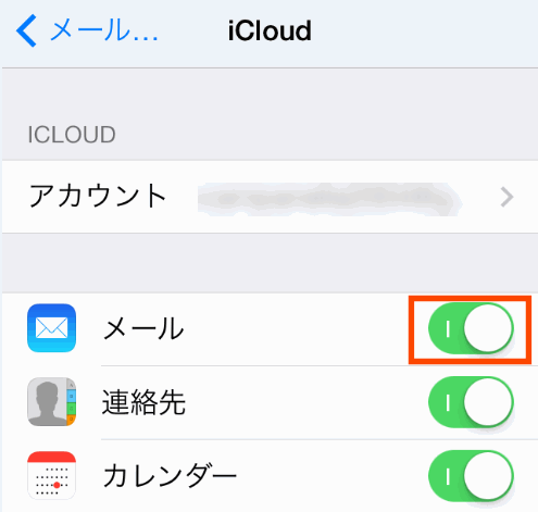 「メール」の右横にあるオン・オフのスイッチをオフにすると、「メール」アプリにiCloudのメールが受信されなくなります。