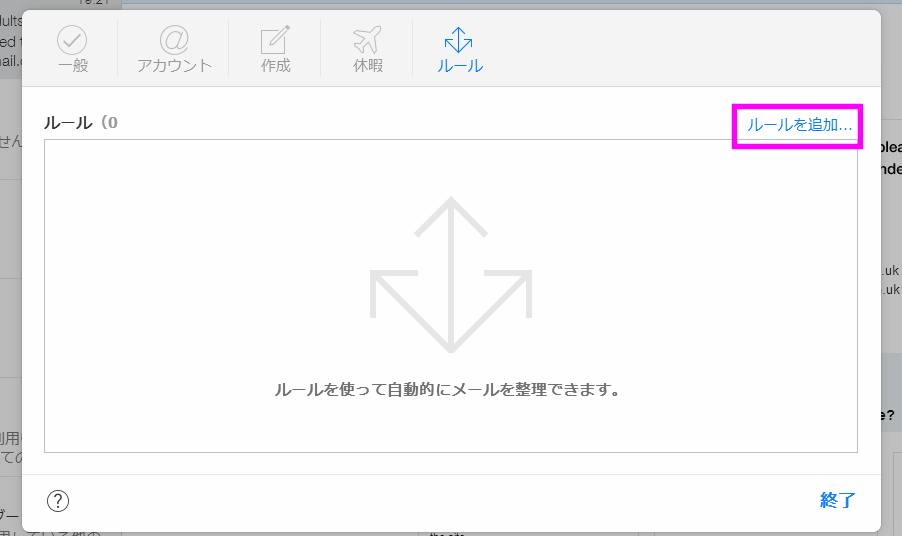 今回は迷惑メールに分けるルールを作成しましたが、特定のメールアドレスに転送する。とか、ゴミ箱に移動する。なんていうルールも作成できます。