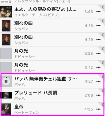 こちらの画像は、メインで使用しているiPhoneの「クラシック」にある曲のリストです。