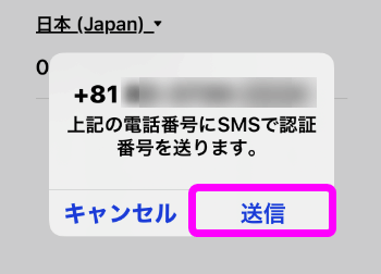 電話番号宛にSMSを送っていいか聞いてくるので、「送信」をタップします。