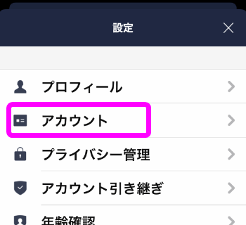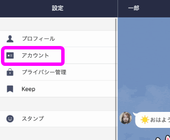 iPadのLINEの設定を開いたら「アカウント」をタップします。