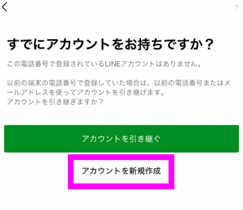 認証番号が正しいとこのような画面になるので、「アカウントを新規作成」をタップします。